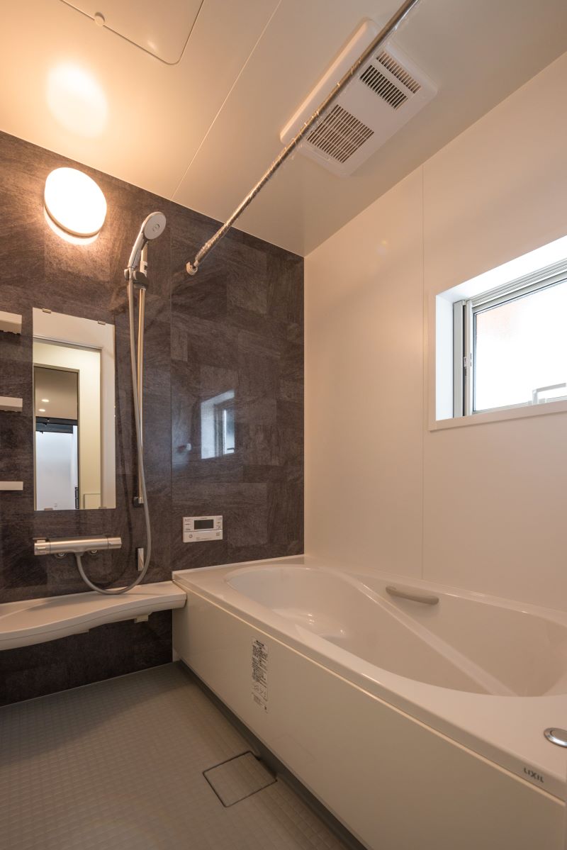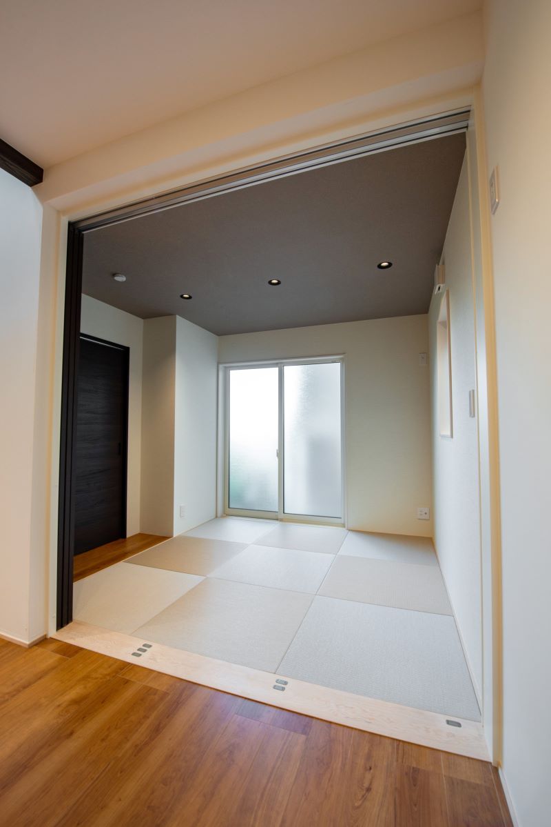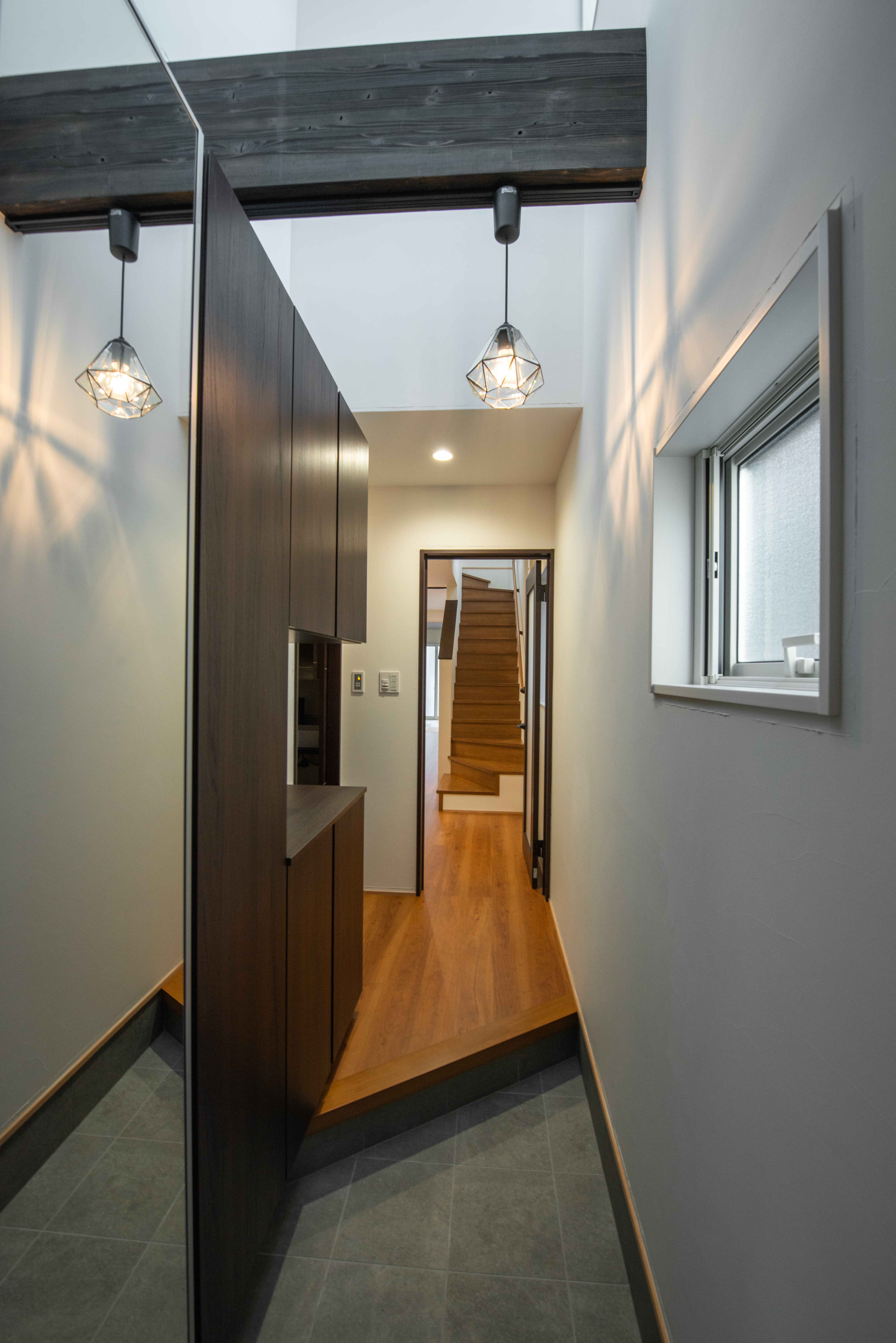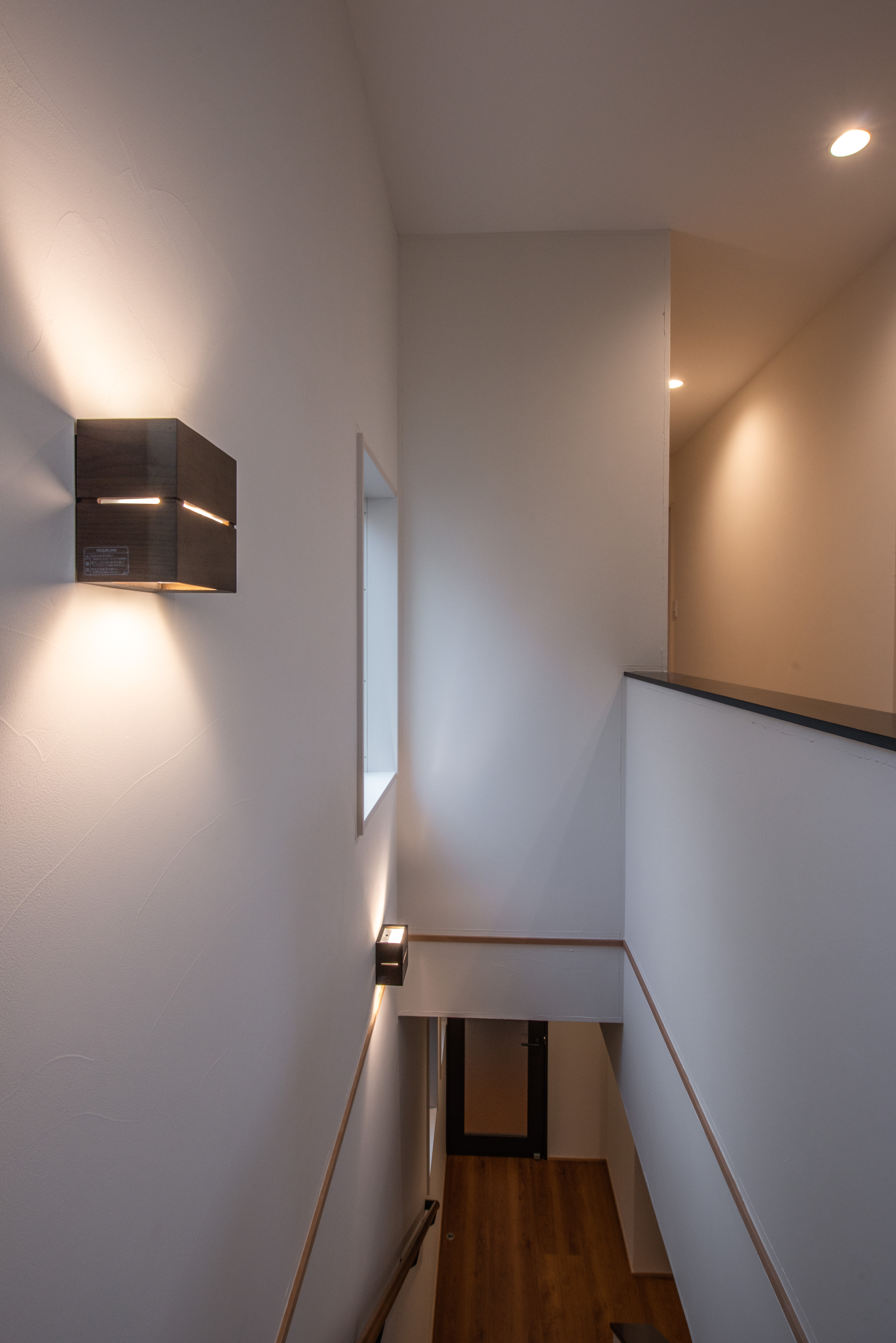 シンプルハイクラス 濃紺のシンプルハウスですが一部に木目の外壁材を使用して単純さを回避。 リビングから吹抜けに繋がる明るさは圧巻です。 間口も広くない敷地ですがあえて「抜け」を取り入れて狭さを感じない間取りとなっております。 その中で畳ルームも取り入れた間取りです。 機能的で使いやすいキッチンの近くに水回りで生活動線もよく、質の高い設備取り入れております。洗面台は印象的でタイル張りのシンクは目を引きます。 もちろん断熱と自然素材にこだわったシンプルハイクラスの家です。 << 前のページに戻る