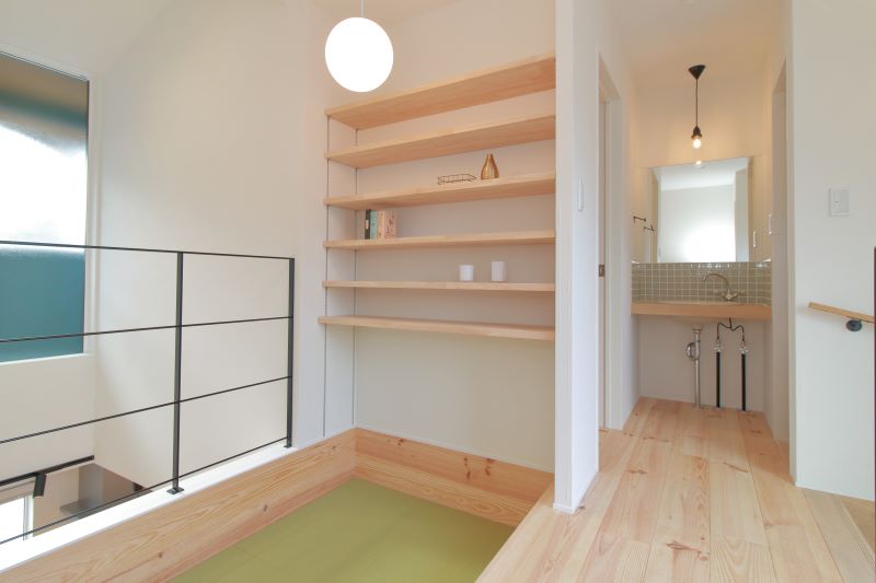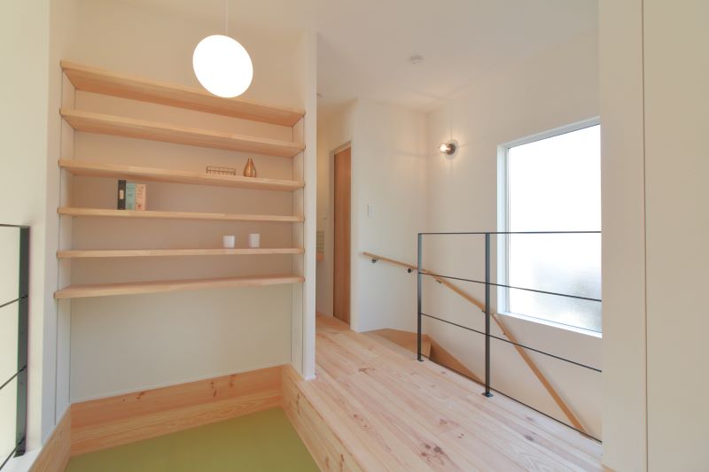 | ZEH仕様のアート作品です。太陽光5.2k設置・安心の減震装置搭載。 玄関入ると大収納のシューズクロークがあります。子供さんが帰ると靴を脱ぎ、すぐに手洗いしている光景が目に浮かびます。癒しのニッチもあります。リビングに入ると奥様がキッチンを起点にパントリーなど毎日が楽しくなる家事導線。 大きく吹抜けがありますがセルロースファイバー断熱なので電気代も安心。 そこから2階への階段も圧迫感がない仕様。 階段を上がると、なんと皆さんで集えるライブラリースペースは吹抜けを利用したサンクン仕様です。時には寝ころび時には読書など楽しめます。 さらに子供部屋、寝室と繋がります。 寝室には、大きな収納と書斎があります。毎日を楽しく過ごせる安心なお家です。 |
