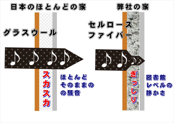 その証拠の一つがアメリカや日本の空港近くの騒音対策として「セルロースファイバー断熱材」が『防音性の高さ』から使用されてます。