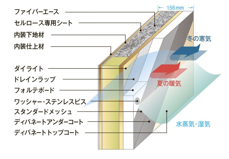 雨水は通さず、空気は通します。そのため、壁内結露を防ぐことができ、家の寿命が延びます。
