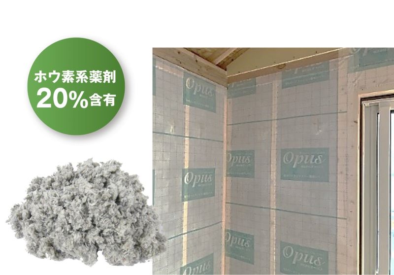 しかし、ファイバーエースは、高い断熱性能はもちろんのこと、その最大の特徴でもあるホウ素系薬剤を20%(通常は5%程度)含ませることにより、