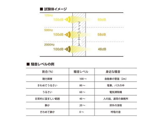 また、原料の木質繊維の性質よる高い調湿機能(調湿試験)や、隙間なく施工できることによる防音性能(界壁の遮音認定)も発揮します。