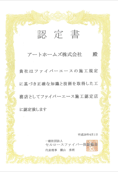 施工認定店が施工した物件に対してファイバーエースの保証を行います。